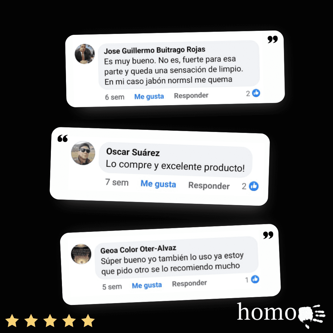 Aplique una pequeña cantidad de Jabón Homo sobre la mano y esparza sobre el área genital externa hasta que quede espumoso, luego enjuague y disfruta de una refrescante sensación.